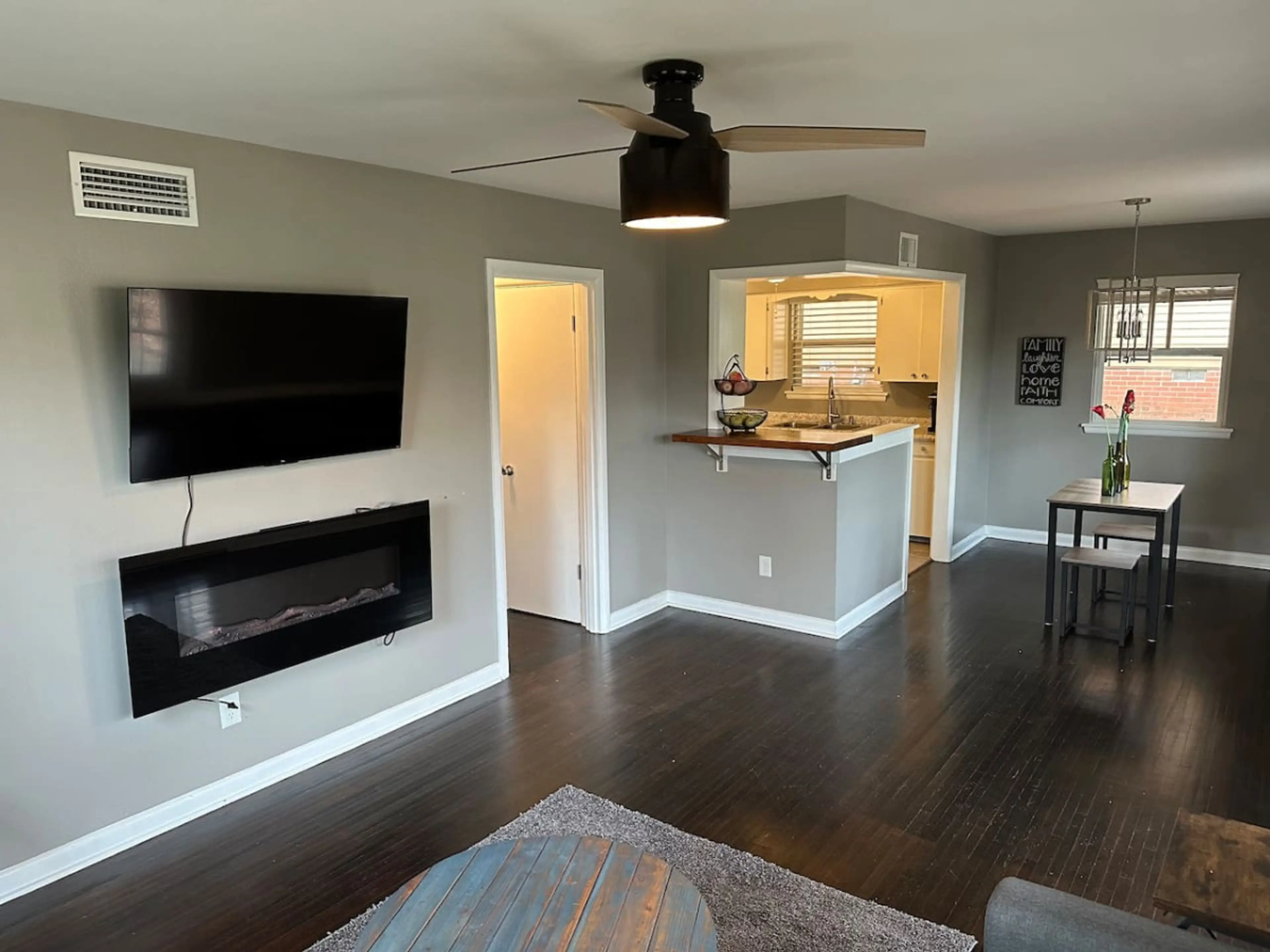 Casa renovada de 3 habitaciones y 1 baño, ¡cerca de todo! Disfrute de una amplia sala de estar con un televisor inteligente de 50". Dos habitaciones ofrecen camas tamaño queen, mientras que la tercera sirve como oficina. El dormitorio principal cuenta con un televisor inteligente de 42". Pisos de ma...